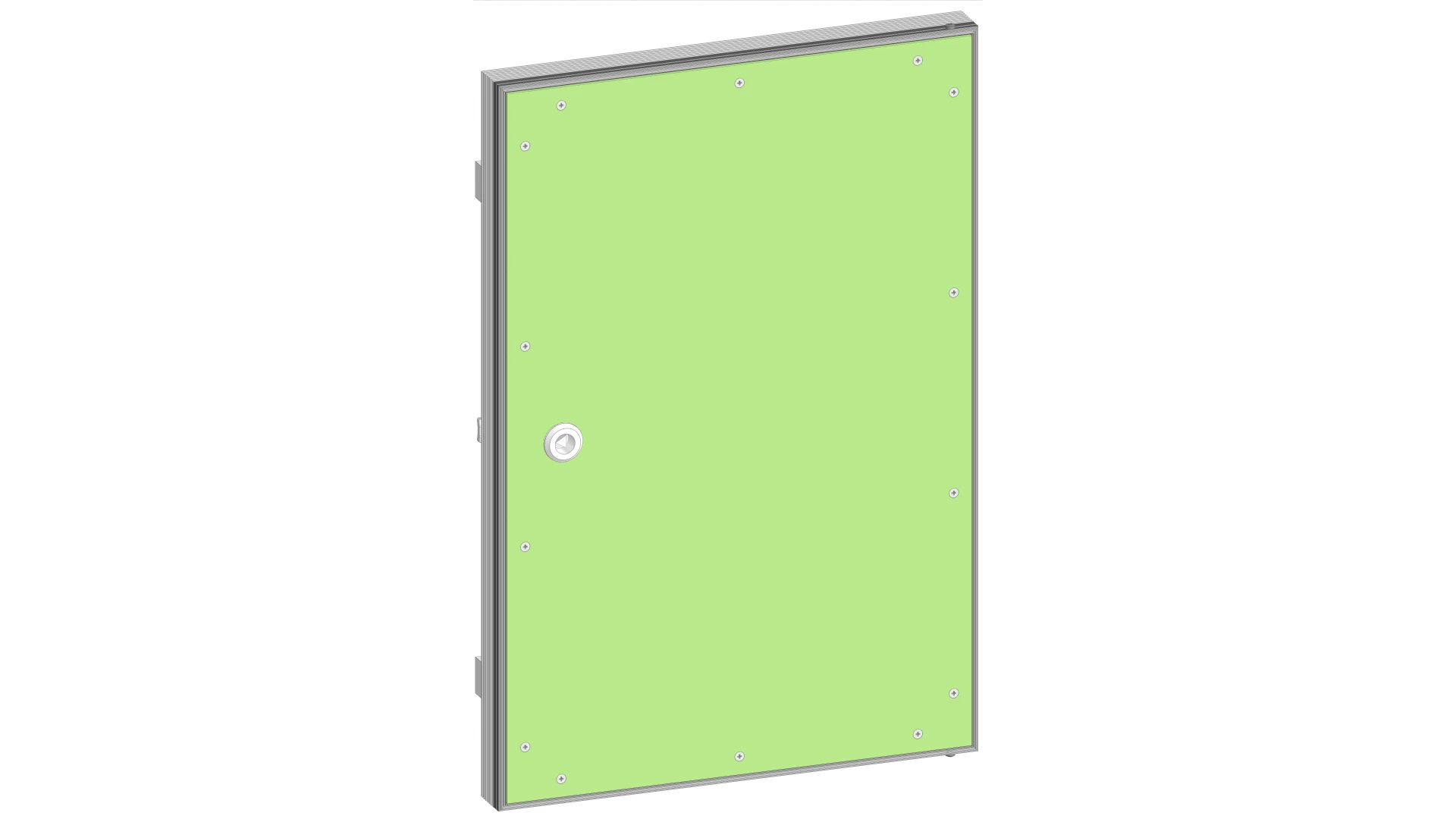 Рама люка сделана из алюминиевого проката, а дверца облицована влагостойким гипсокартоном и имеет резиновый уплотнитель по периметру.